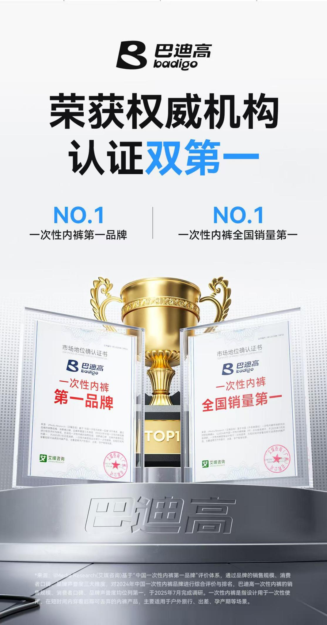 艾媒认证巴迪高一次性内裤“双第一”!零手触新品即将发布